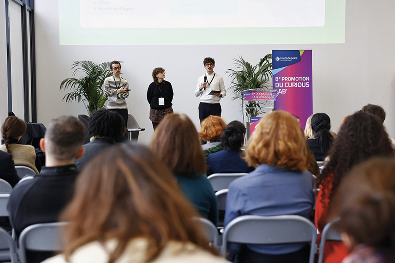 Détection des jeunes talents, lien intergénérationnel, santé mentale des jeunes, éco-ambassadeurs, facilitation des démarches numériques… Face aux défis soumis par les communes pour 2025-2026, l’Institut Français de Géopolitique a dégainé le premier, en répondant aux villes d’Antony, Bois-Colombes, Gennevilliers, Villeneuve-la-Garenne et Châtillon. À l’hôtel du Département, à Nanterre, la présentation des étudiants devant ces commanditaires et leurs enseignants a été suivie d’une remise de trophées en présence de Marie-Pierre Limoge, vice-présidente déléguée à l’économie sociale et solidaire. Créé en 2019, le Curious Lab’ voit des jeunes se confronter à des cas concrets, entrecroisant leurs réflexions avec celles des communes afin d’enrichir l’action publique locale. « Les collectivités peuvent avoir besoin d’un pas de côté pour innover tandis que les étudiants se mettent moins de barrières mais sont moins à l’aise sur les aspects opérationnels », résume Florian Mlynarski, chargé de projet Curious Lab’ au Département. À cette même occasion, huit communes ayant été associées à la promotion 2024-2025 ont reçu un chèque pour faire advenir leurs projets dans les cinq ans. À chaque promotion, un cofinancement départemental peut être attribué, à hauteur de 50 % du montant maximum, dans la limite de 20 000 €, grâce à l’enveloppe annuelle de 100 000 € dédiée au Curious Lab’.